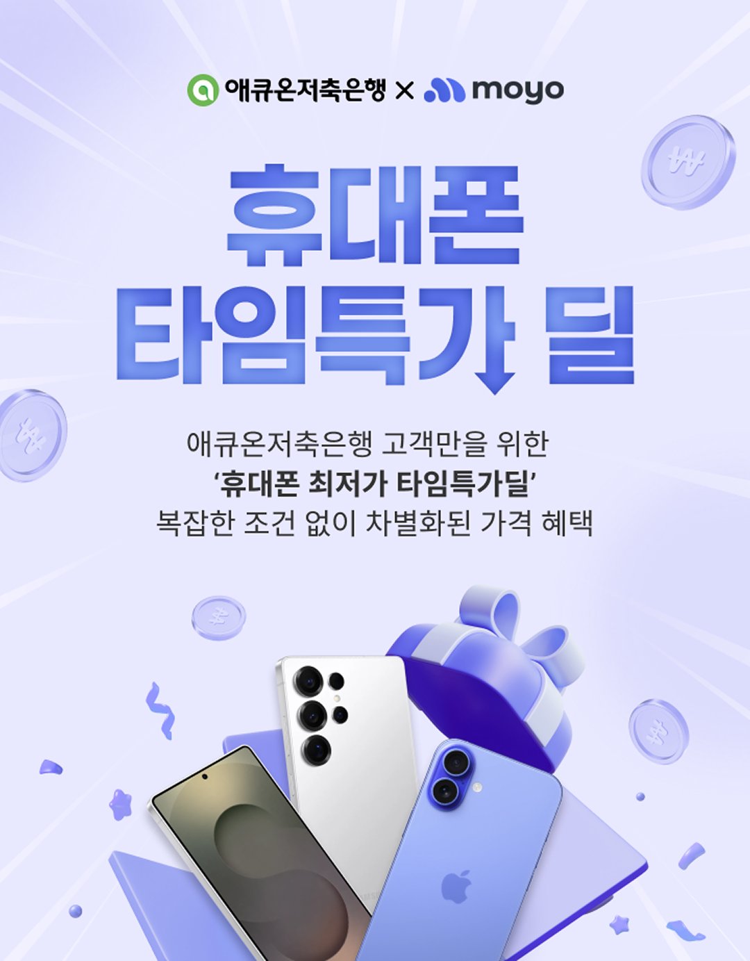 애큐온저축은행 고객만을 위한 '휴대폰 최저가 타임특가 딜' 복잡한 조건 없이 차별화된 가격 혜택